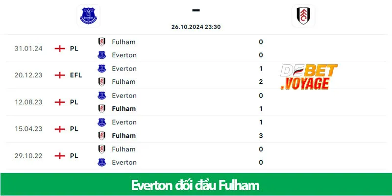 Thành tích hai đội Everton và Fulham